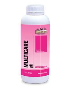 Pour MULTICARE pH in the atomizer before adding other products. Dosage varies according to water pH and initial hardness: approximately 100–200 mL/hL of product are suggested to reach pH values of about 5.5–6.